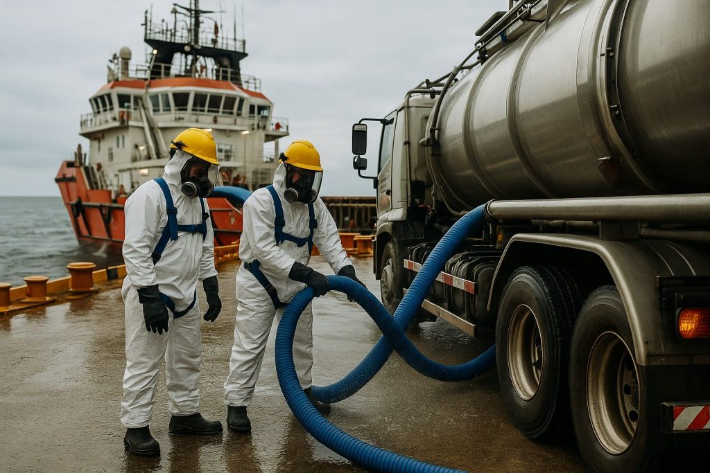Descotaminação, Flushing, Hidrojateamento UHP, slops e sludges, com controle de emissões e segurança patrimonial.